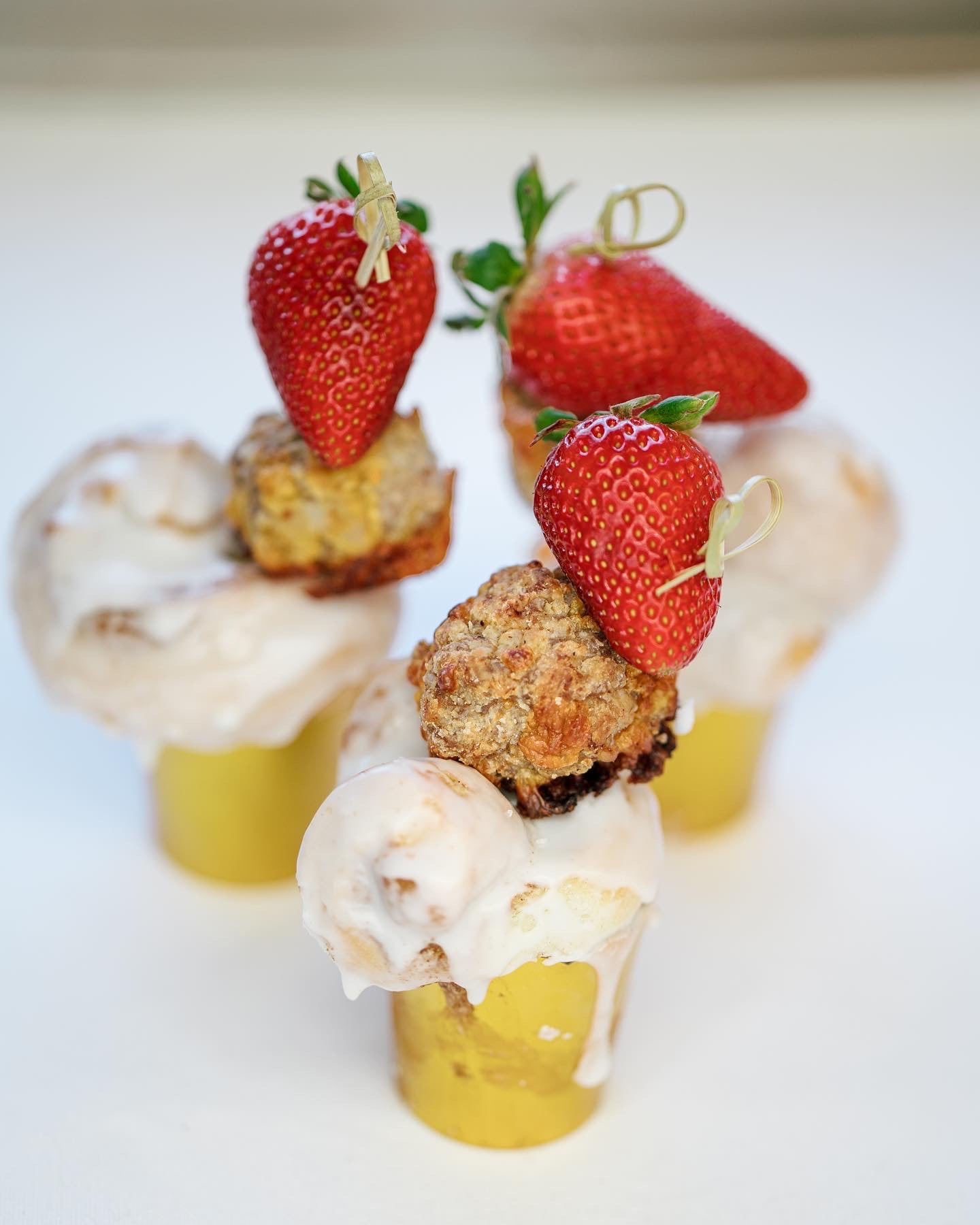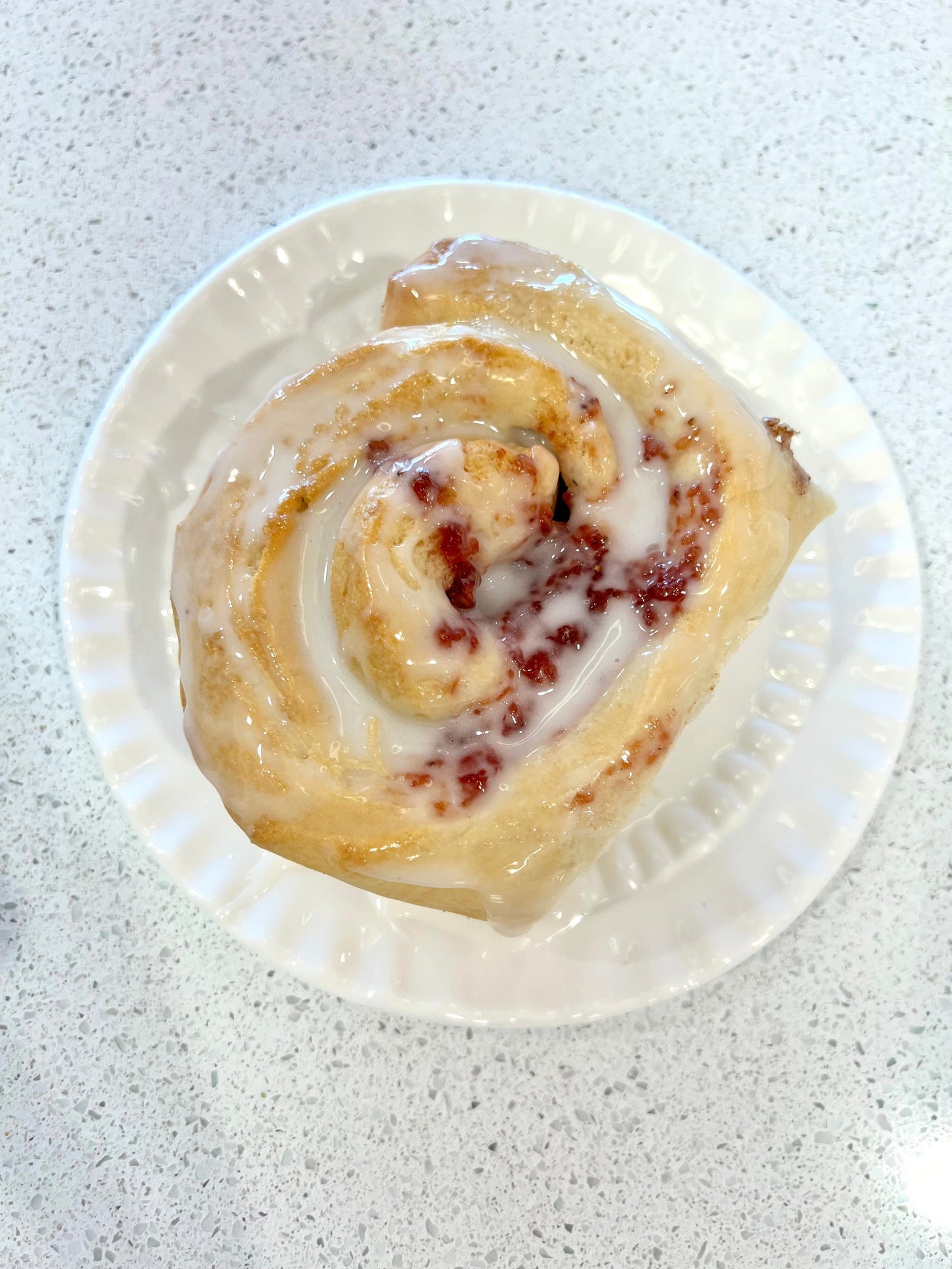 come check out our Strawberry Lemon rolls! They are filled with homemade strawberry preserve and topped with a delicious lemon glaze. come try today and let us know what you think!
