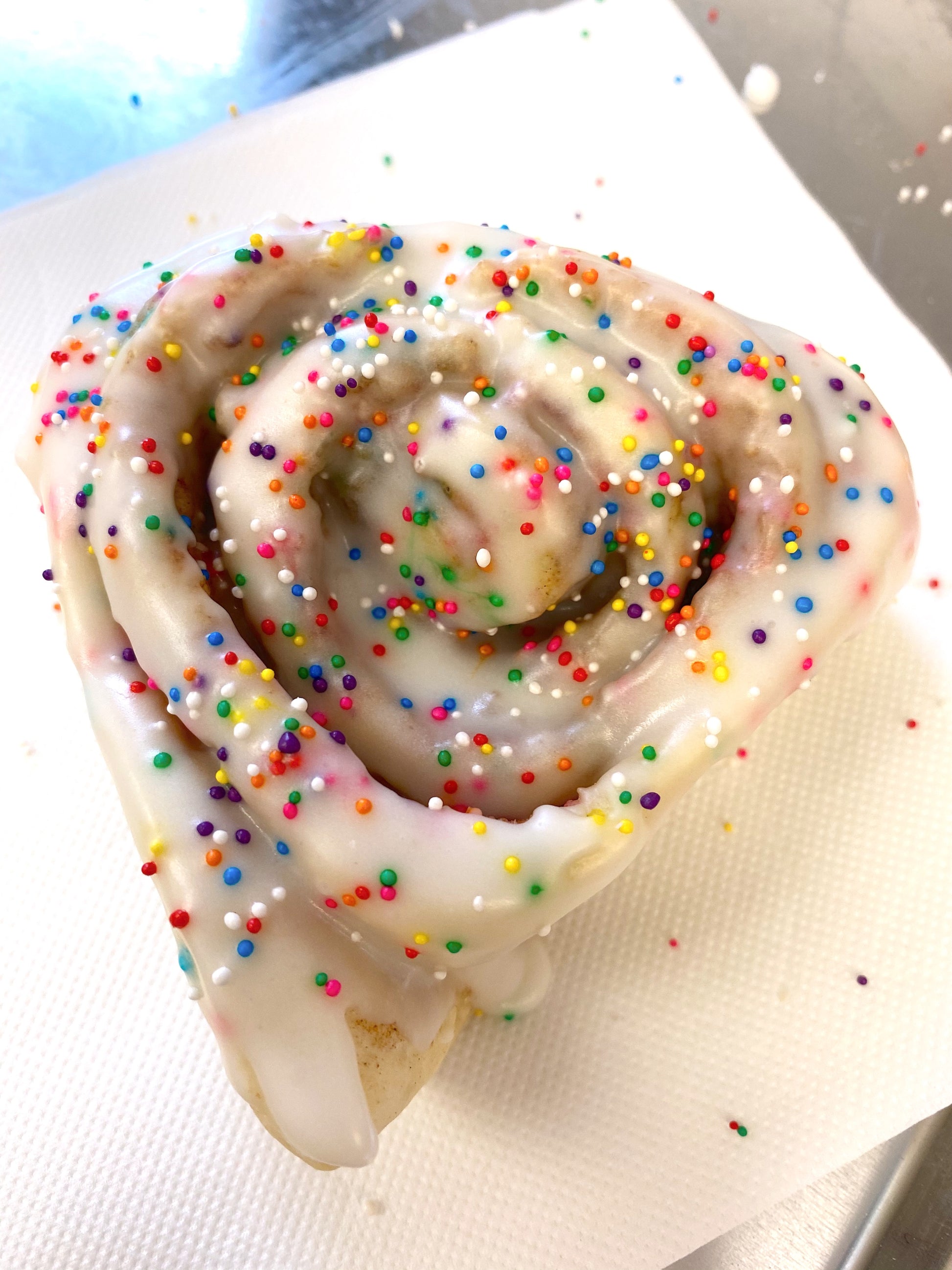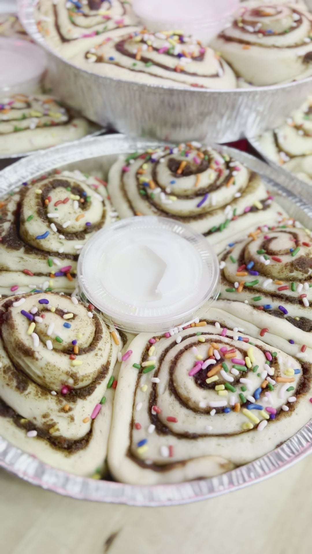 Funfetti makes everything more fun!! These are our OG rolls baked with Funfetti sprinkles in the dough, covered in original icing and then sprinkled with Funfetti sprinkles!